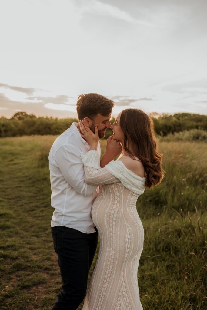This maternity photography Southampton session took place on a warm evening in a quiet meadow, just outside the city. It was a calm, unhurried session with first-time parents, capturing a season of anticipation, connection, and the quiet excitement of waiting to meet their baby.