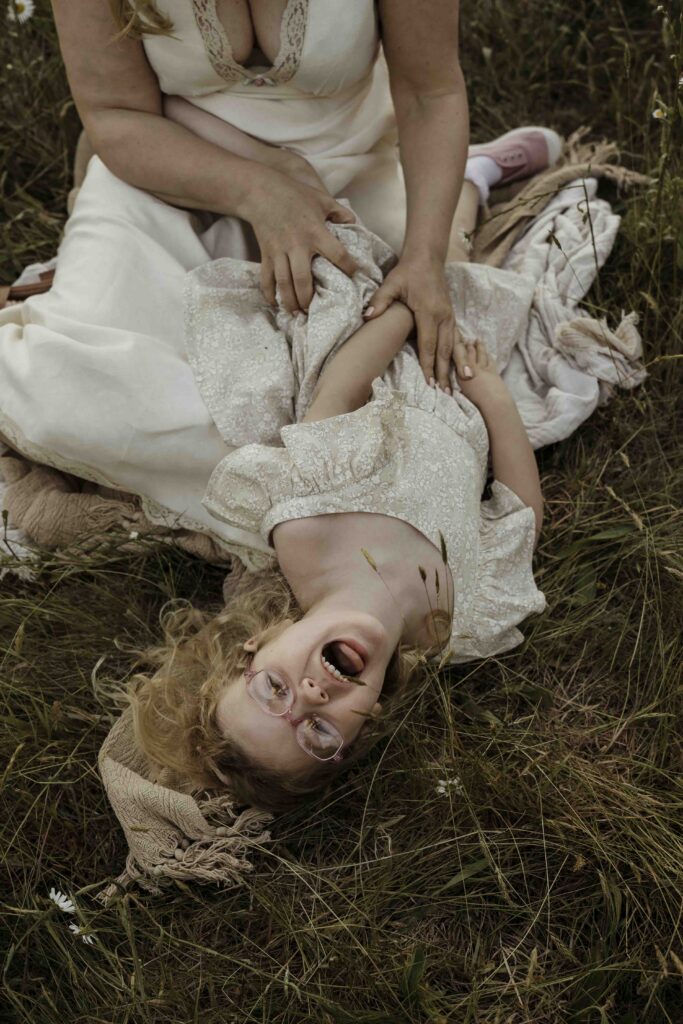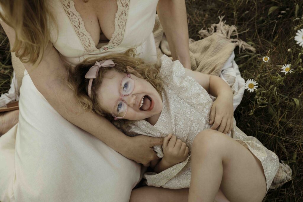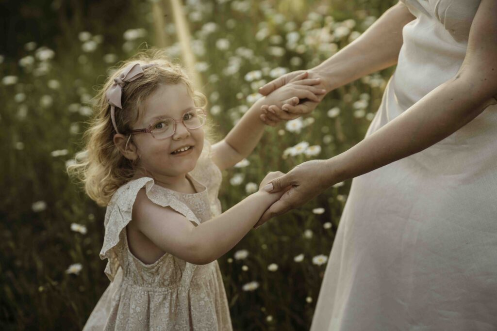 For this session, we moved gently through the meadow, stopping when the light felt right and letting the surroundings shape the pace. The focus stayed firmly on the relationship between mother and daughter, with nature simply framing the story.