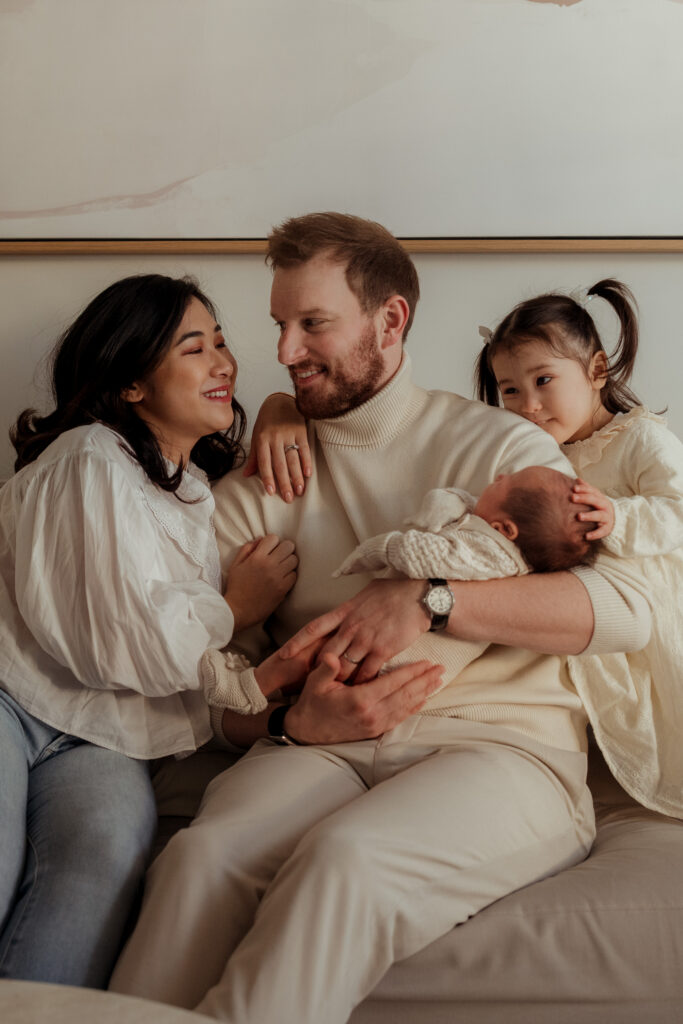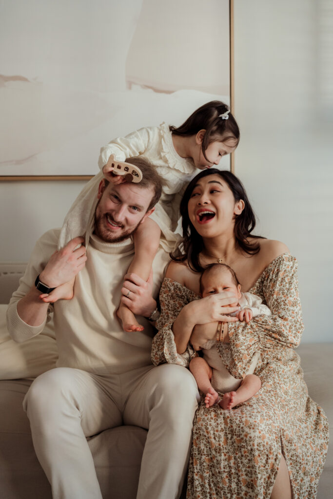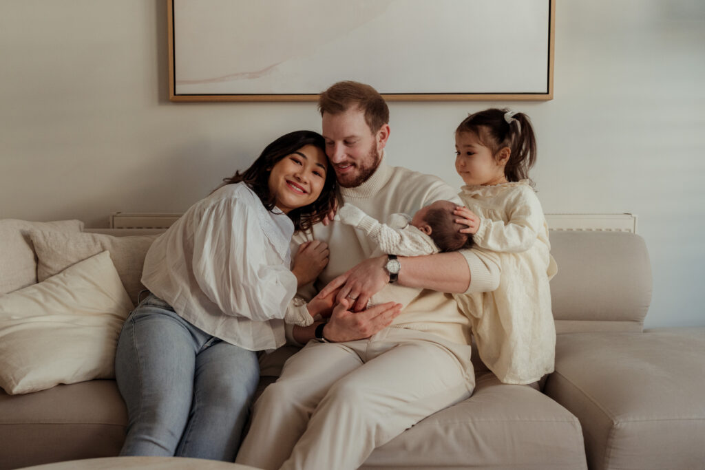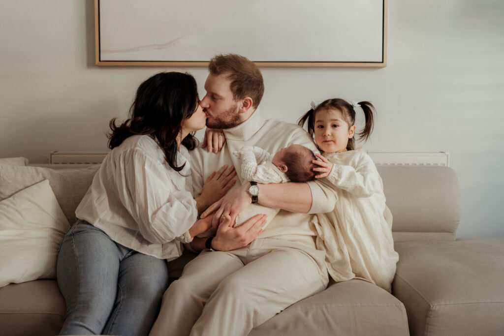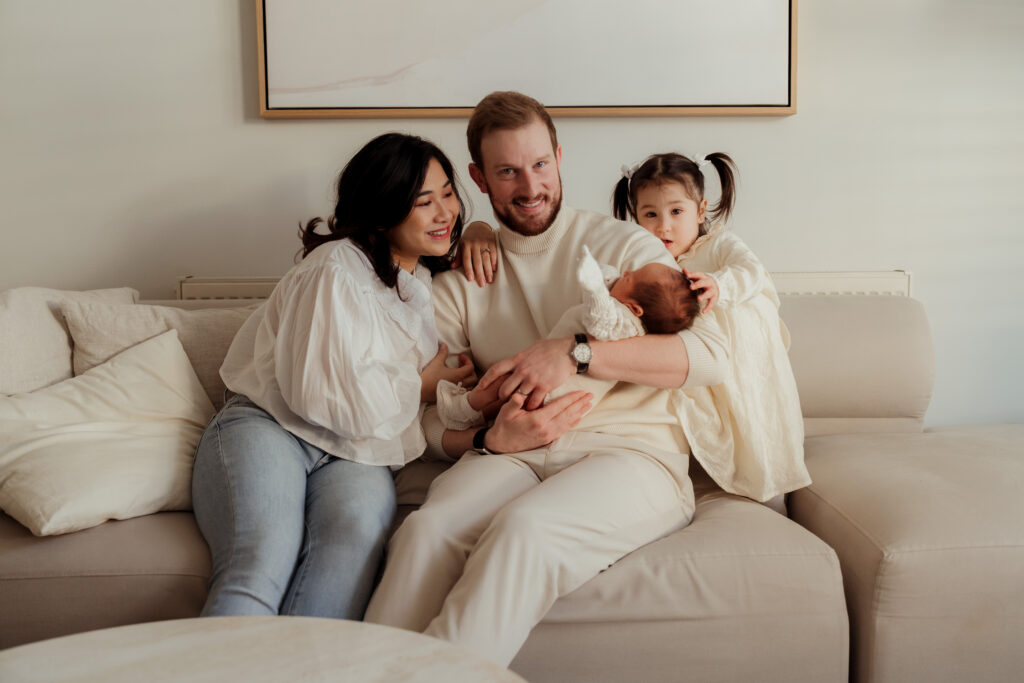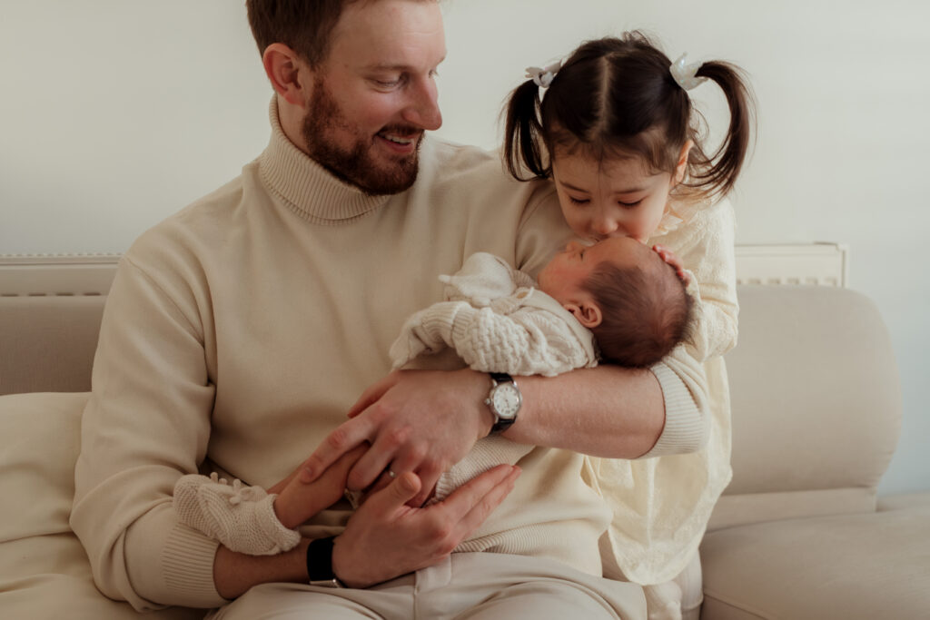 Rather than overly styled setups, the focus is always on connection. Gentle moments between parents and their baby, siblings sitting close together, and the quiet calm that often settles once everyone relaxes into the rhythm of the session.