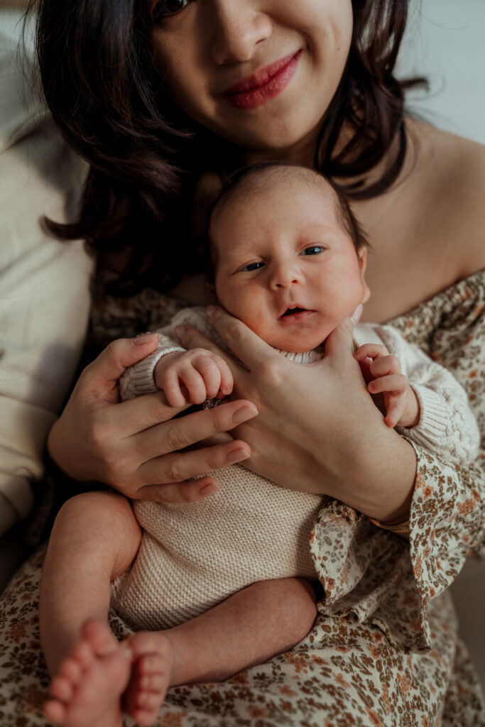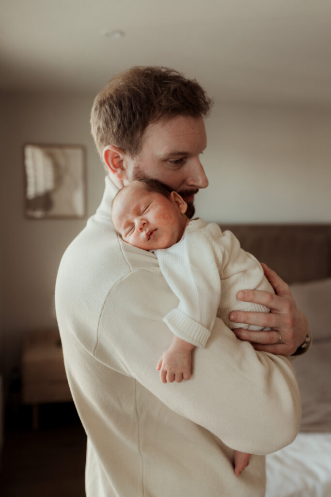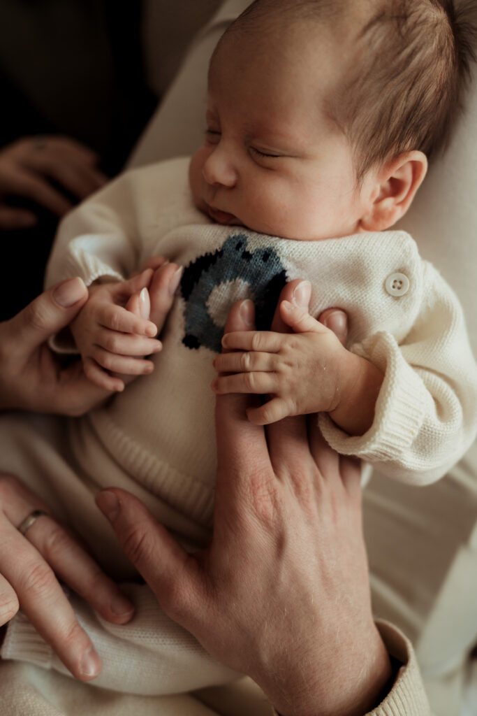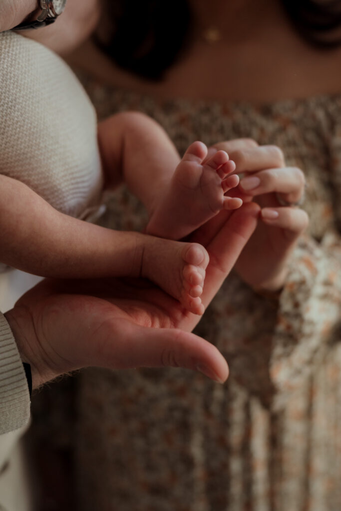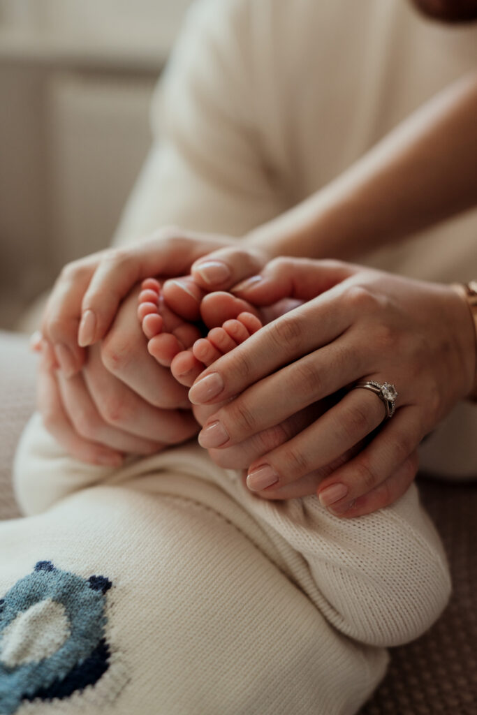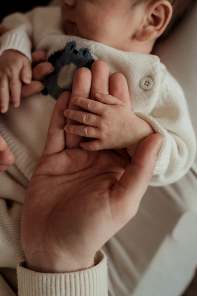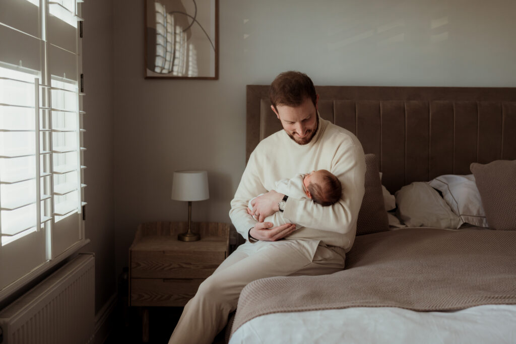These sessions are led by your baby and your family. We move gently through the home finding pockets of soft natural light, photographing cuddles on the bed, quiet moments on the sofa, and the little details that often pass in a blur during those early weeks.